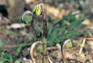 산지의 숲속에서 자라는 숙근초로 고사리과 중 관상 가치가 높은 축에 속한다.