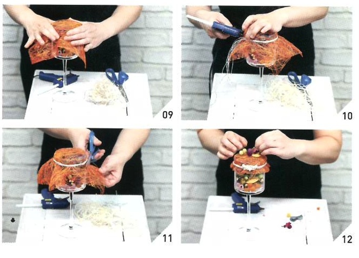 11. 리본으로 모양을 내어 마무리 짓고, 가위로 지저분한 부분을 잘라낸다.