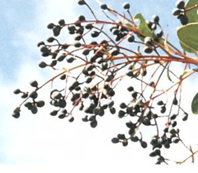 열매는 핵과로 공 모양이며 직경이 약 1㎝ 정도다.