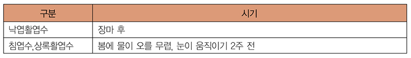 > - 가지치기와 잎 털기 등을 해서 뿌리와 줄기 잎의 수분율을 맞춘다.