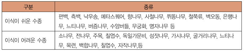>이식이 어려운 수종은 1, 2년 전 미리 잔뿌리를 발달시켜 이식력을 높여 두어야 한다. 근원직경(뿌리 부분의 나무둘레) 3~6배 크기의 뿌리 부분 흙을 파내고 뿌리를 자른다. 일반적으로 1년 뒤 이식을 준비한다. 시기는 뿌리 생장이 활발한 이른 봄이 좋지만 혹한기, 혹서기만 피하면 무관하다. 단, 대체로 직근성 뿌리를 가진 소나무, 차나무, 호두나무 등은 이식이 까다로운 편이다.