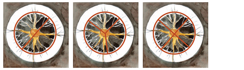 > 자르는 부분 굵은 뿌리의 환상박피 모습