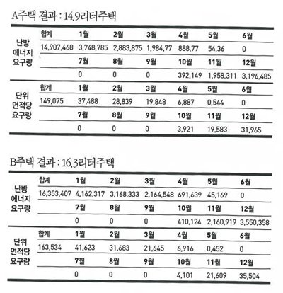 결과만 본다면 A주택은 연간 1㎡당 14.9리터로 나왔고,
