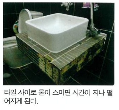 그리고 타일 밑으로 침투된 물 때문에 화장실이 항상 습하거나