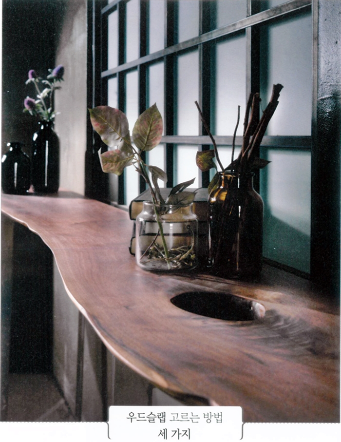 떡판,통판,원목상판 등 다양한 이름으로 불리며 최근인가 높아진 우드슬랩. 아름다운 자연의 디자인에 나무의 새명력이 더해져 공간에 품격을 높이고 사람의 마음에는 위안을 준다. 한 번 들이면 평생 쓰고 대를 잇기도 한다는 우드슬랩, 전문가의 도움을 받아 골라보자.