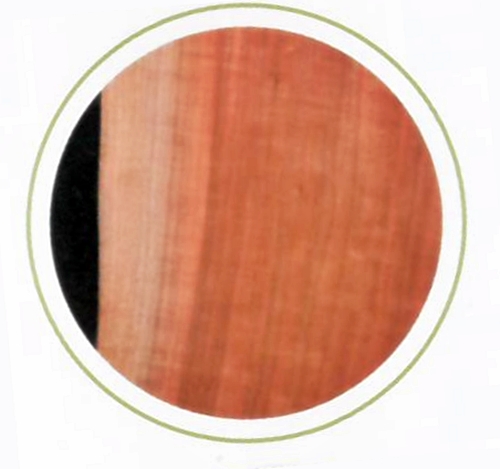 심재와 변재의 색상이 붉은 황백색, 엷은 황갈색을 토치는 잔잔하고 섬세한 무늬와 실크 같은 광택이 매력이다